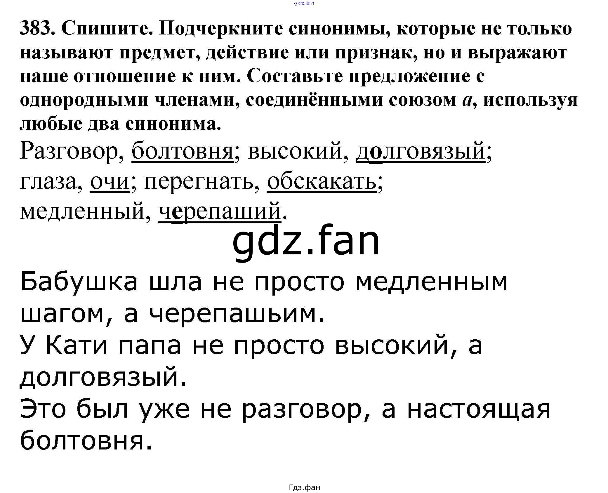 Проверка домашнего задания всегда занимает большое количество времени. На помощь приходит ГДЗ фан по Русскому языку пятого класса. Здесь собраны популярные ответы на 383 (стр. 182) Русский язык 5 класс Ладыженская Т.А.