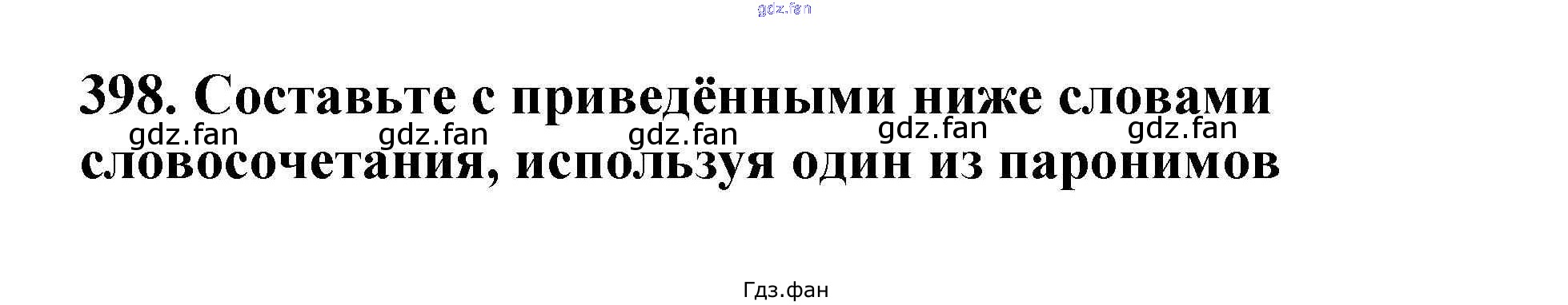 Проверка домашнего задания всегда занимает большое количество времени. На помощь приходит ГДЗ фан по Русскому языку пятого класса. Здесь собраны популярные ответы на 398 (стр. 188) Русский язык 5 класс Ладыженская Т.А.