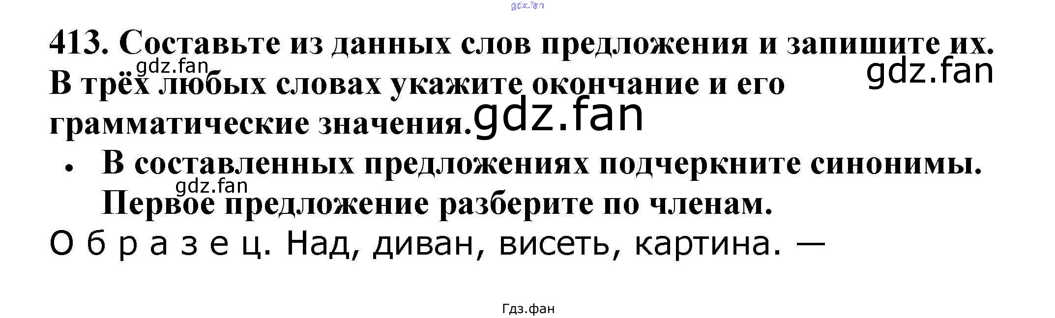 Проверка домашнего задания всегда занимает большое количество времени. На помощь приходит ГДЗ фан по Русскому языку пятого класса. Здесь собраны популярные ответы на 413 (стр. 8) Русский язык 5 класс Ладыженская Т.А.