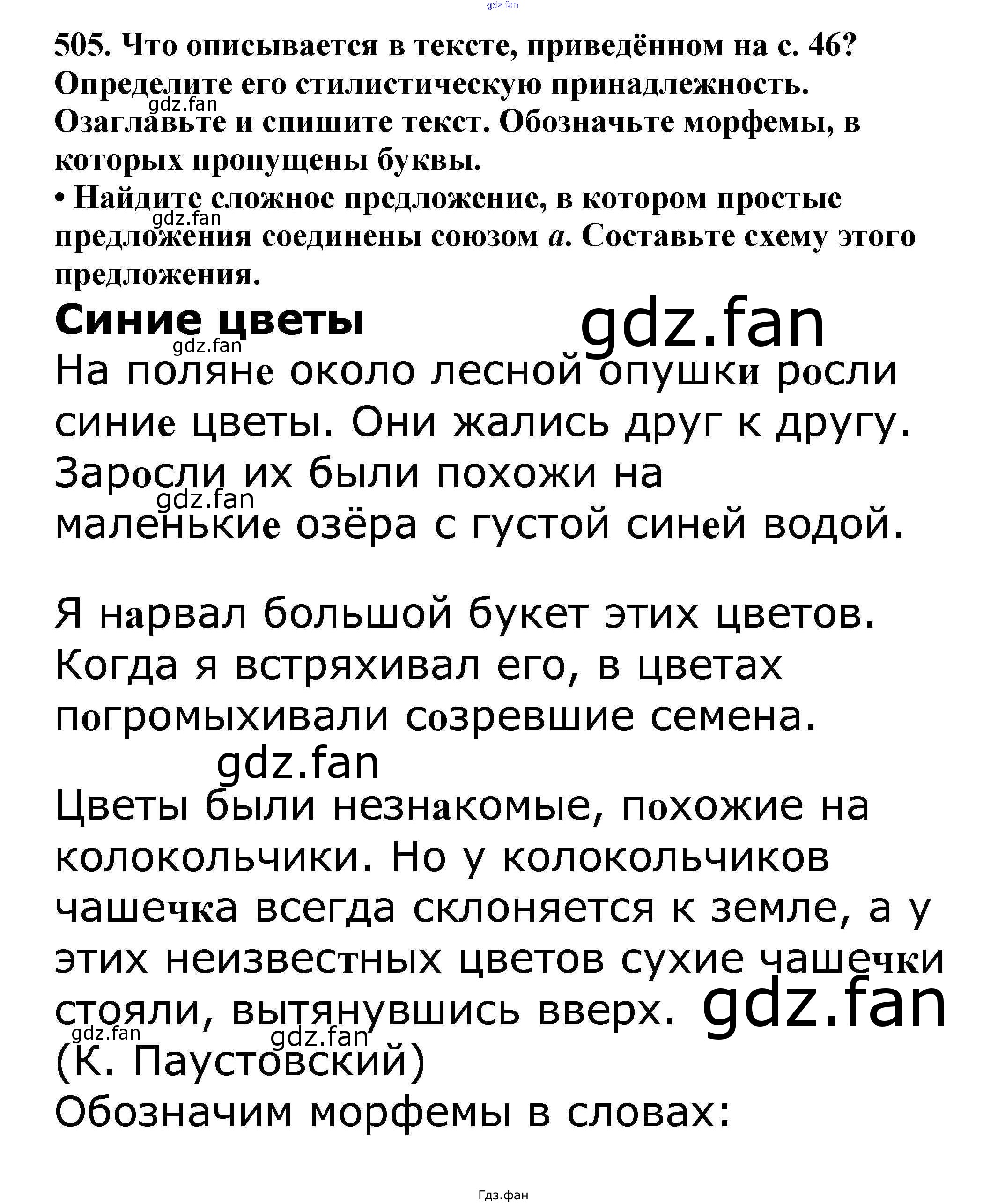 Проверка домашнего задания всегда занимает большое количество времени. На помощь приходит ГДЗ фан по Русскому языку пятого класса. Здесь собраны популярные ответы на 505 (стр. 45) Русский язык 5 класс Ладыженская Т.А.