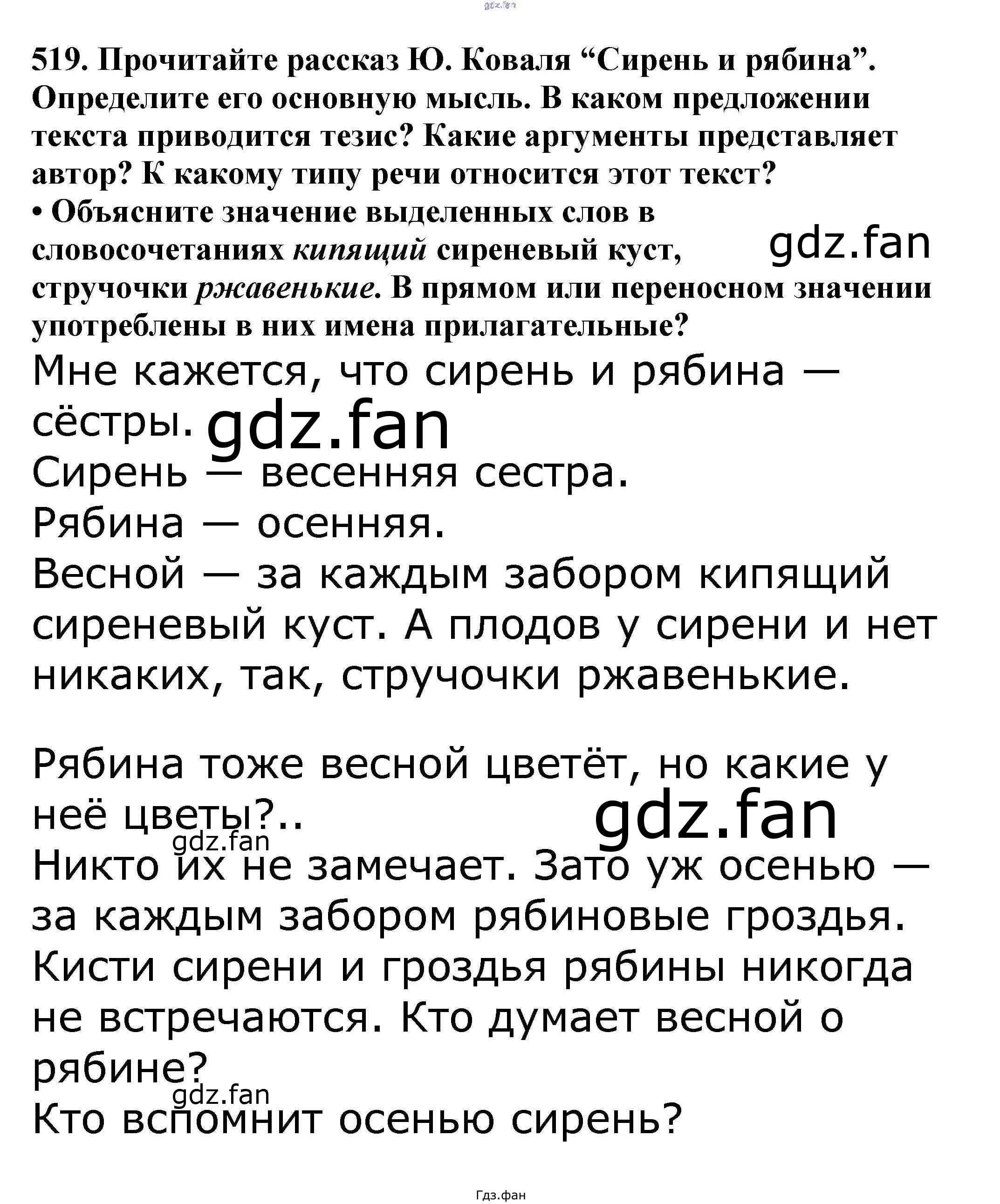 Проверка домашнего задания всегда занимает большое количество времени. На помощь приходит ГДЗ фан по Русскому языку пятого класса. Здесь собраны популярные ответы на 519 (стр. 54) Русский язык 5 класс Ладыженская Т.А.