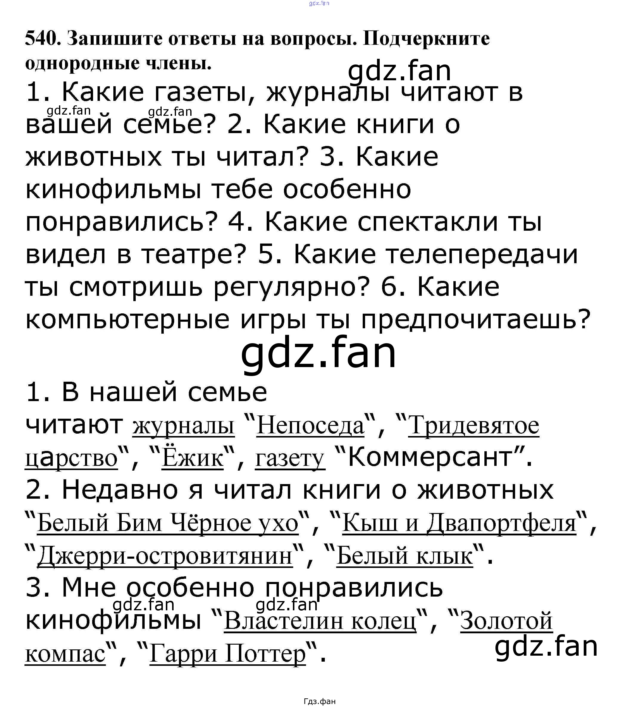 Проверка домашнего задания всегда занимает большое количество времени. На помощь приходит ГДЗ фан по Русскому языку пятого класса. Здесь собраны популярные ответы на 540 (стр. 63) Русский язык 5 класс Ладыженская Т.А.