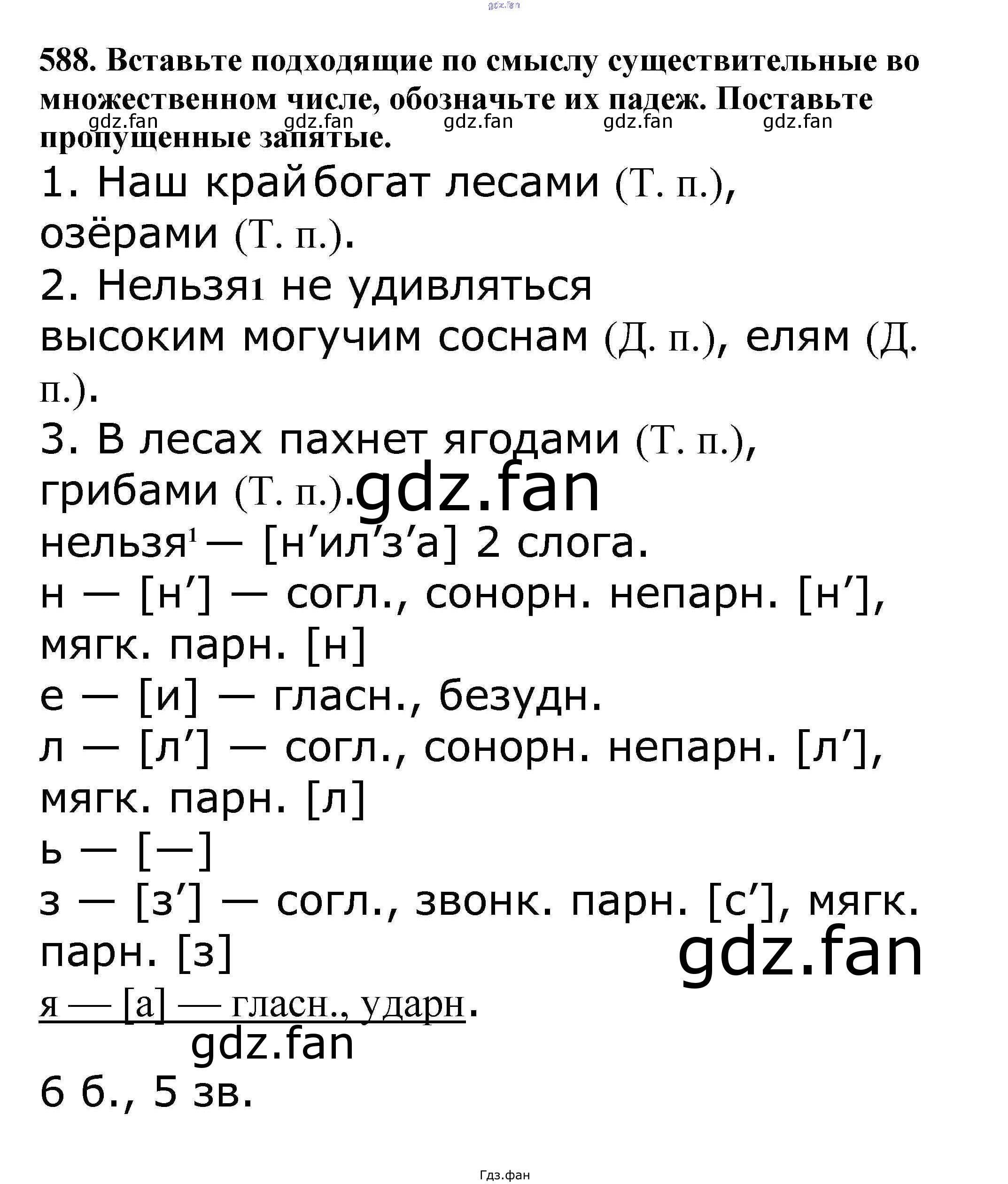 Проверка домашнего задания всегда занимает большое количество времени. На помощь приходит ГДЗ фан по Русскому языку пятого класса. Здесь собраны популярные ответы на 588 (стр. 83) Русский язык 5 класс Ладыженская Т.А.