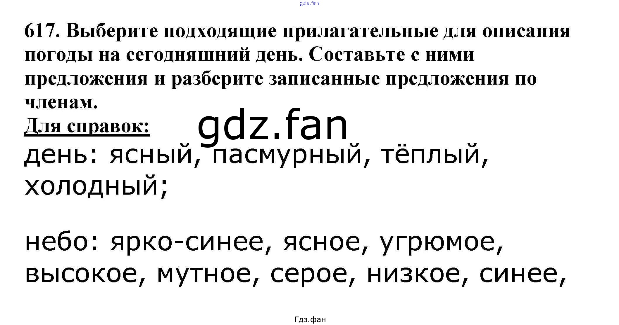 Проверка домашнего задания всегда занимает большое количество времени. На помощь приходит ГДЗ фан по Русскому языку пятого класса. Здесь собраны популярные ответы на 617 (стр. 97) Русский язык 5 класс Ладыженская Т.А.