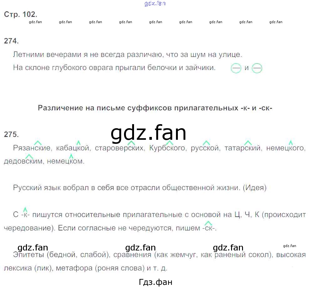 Проверка домашнего задания всегда занимает большое количество времени. На помощь приходит ГДЗ фан по Русскому языку пятого класса. Здесь собраны популярные ответы на 102 (упражнение 274, 275) Русский язык 5 класс рабочая тетрадь Ларионова Л.Г.