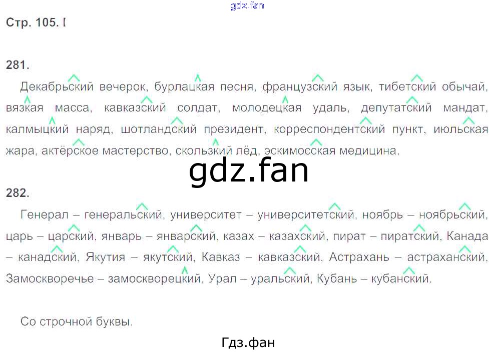 Проверка домашнего задания всегда занимает большое количество времени. На помощь приходит ГДЗ фан по Русскому языку пятого класса. Здесь собраны популярные ответы на 105 (упражнение 281, 282) Русский язык 5 класс рабочая тетрадь Ларионова Л.Г.
