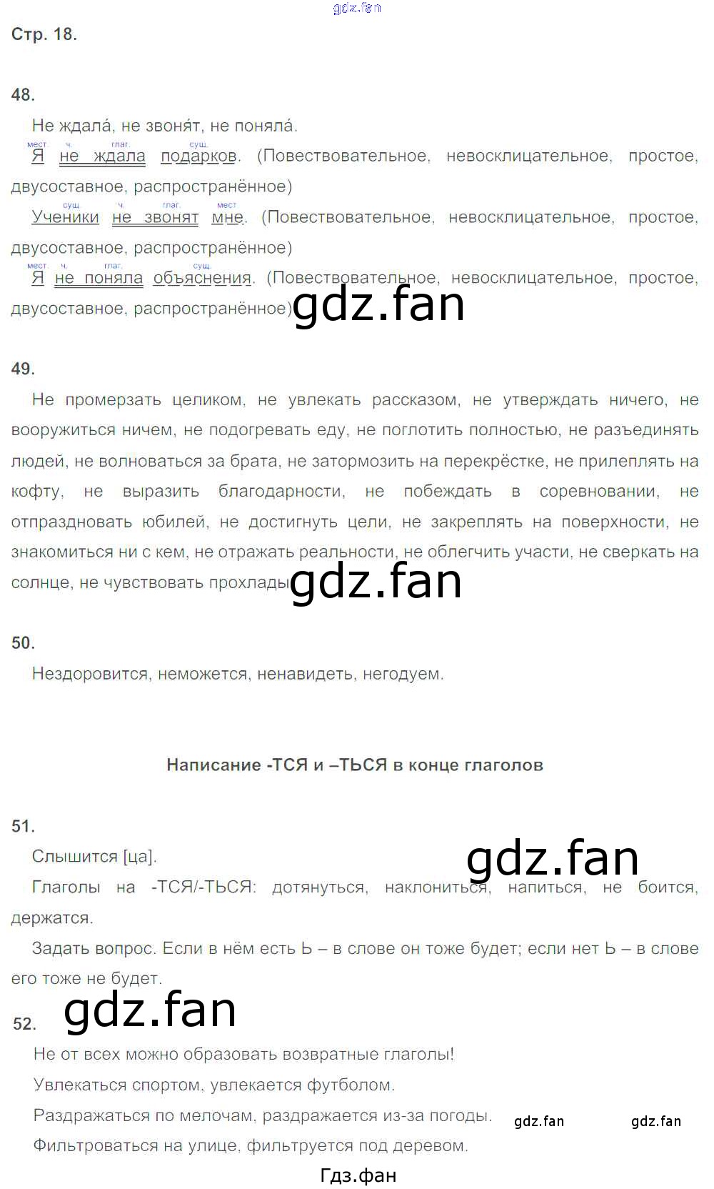 Проверка домашнего задания всегда занимает большое количество времени. На помощь приходит ГДЗ фан по Русскому языку пятого класса. Здесь собраны популярные ответы на 18 (упражнение 48, 49, 50, 51, 52) Русский язык 5 класс рабочая тетрадь Ларионова Л.Г.