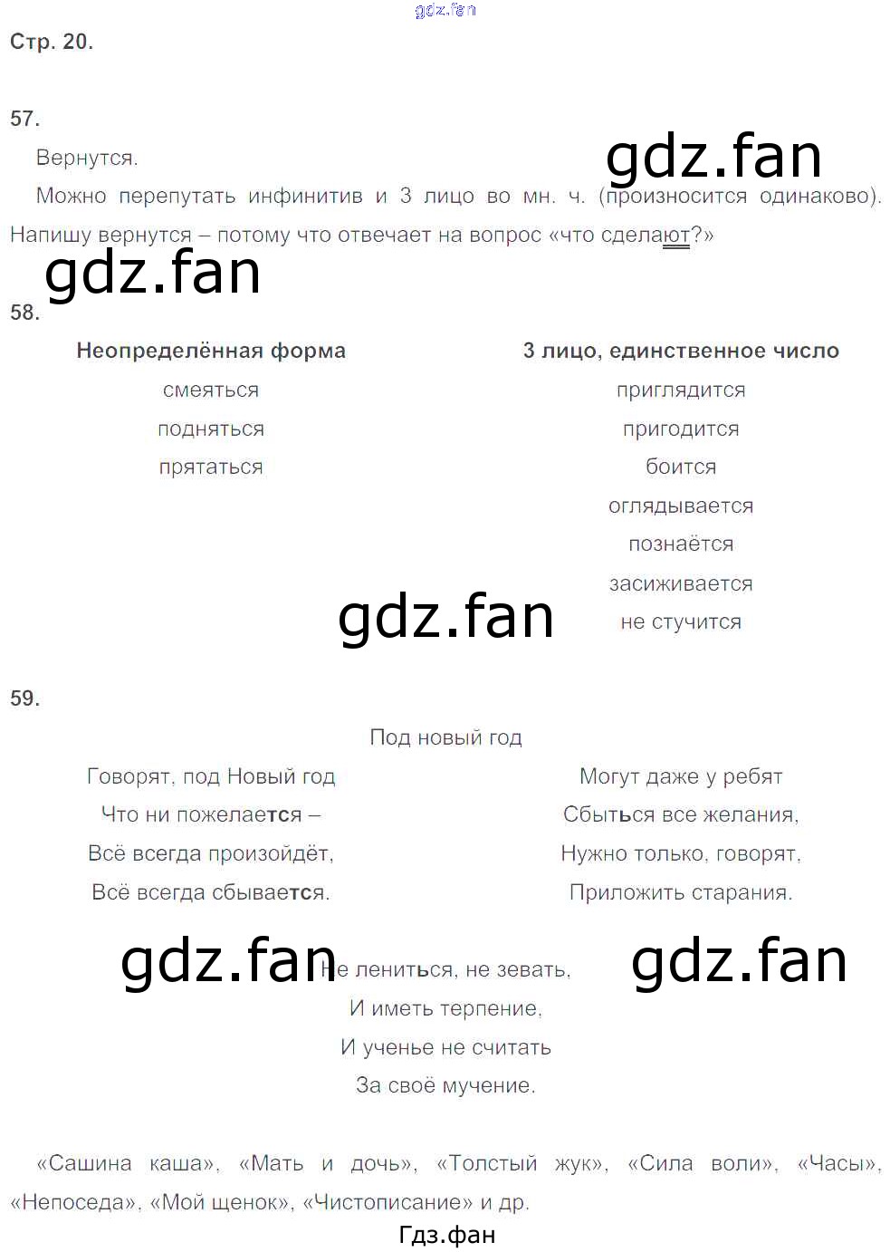 Проверка домашнего задания всегда занимает большое количество времени. На помощь приходит ГДЗ фан по Русскому языку пятого класса. Здесь собраны популярные ответы на 20 (упражнение 57, 58, 59) Русский язык 5 класс рабочая тетрадь Ларионова Л.Г.