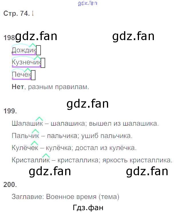 Проверка домашнего задания всегда занимает большое количество времени. На помощь приходит ГДЗ фан по Русскому языку пятого класса. Здесь собраны популярные ответы на 74 (упражнение 198, 199, 200) Русский язык 5 класс рабочая тетрадь Ларионова Л.Г.