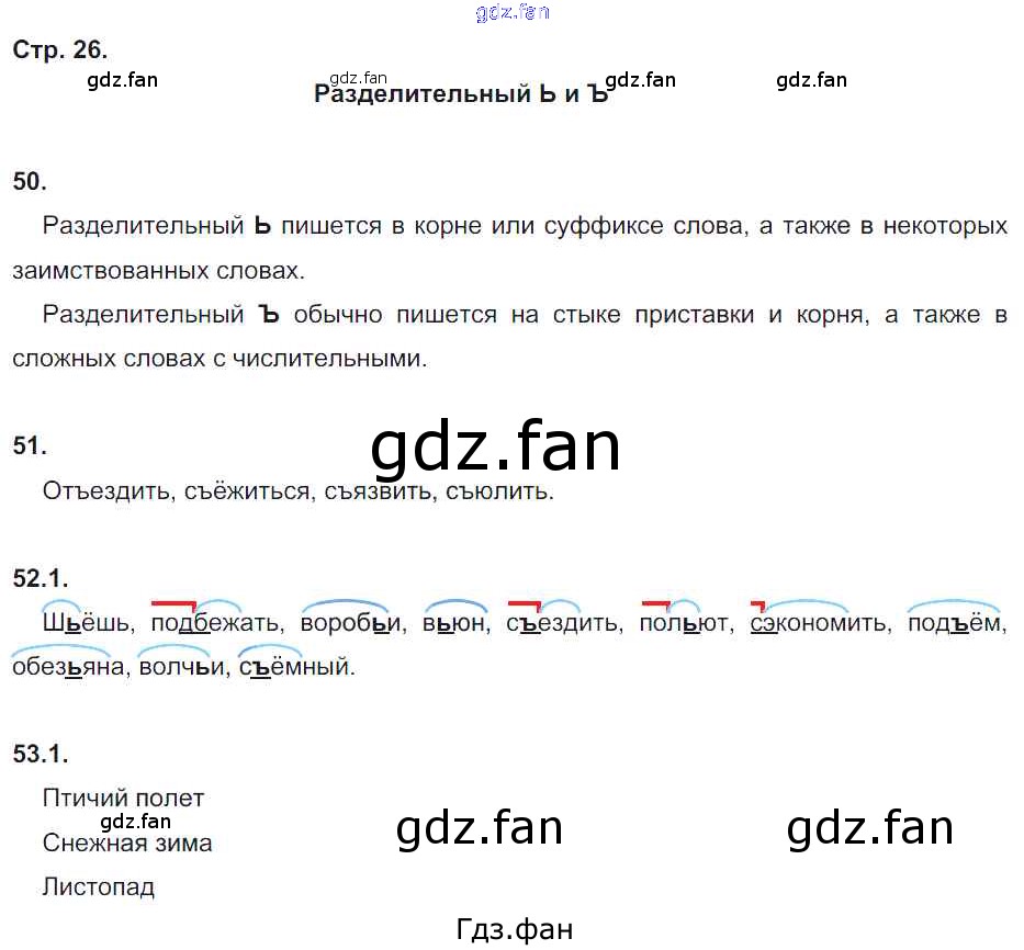 Проверка домашнего задания всегда занимает большое количество времени. На помощь приходит ГДЗ фан по Русскому языку пятого класса. Здесь собраны популярные ответы на 26 (упражнение 50, 51, 52, 53) Русский язык 5 класс рабочая тетрадь Львов В.В. ( к уч. Разумовской)