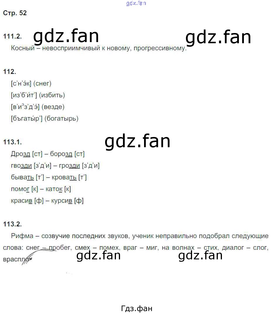 Проверка домашнего задания всегда занимает большое количество времени. На помощь приходит ГДЗ фан по Русскому языку пятого класса. Здесь собраны популярные ответы на 52 (упражнение 111, 112, 113) Русский язык 5 класс рабочая тетрадь Львов В.В. ( к уч. Разумовской)