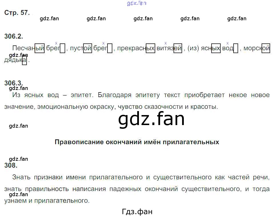 Проверка домашнего задания всегда занимает большое количество времени. На помощь приходит ГДЗ фан по Русскому языку пятого класса. Здесь собраны популярные ответы на 57 (упражнение 306, 308) Русский язык 5 класс рабочая тетрадь Львов В.В. ( к уч. Разумовской)