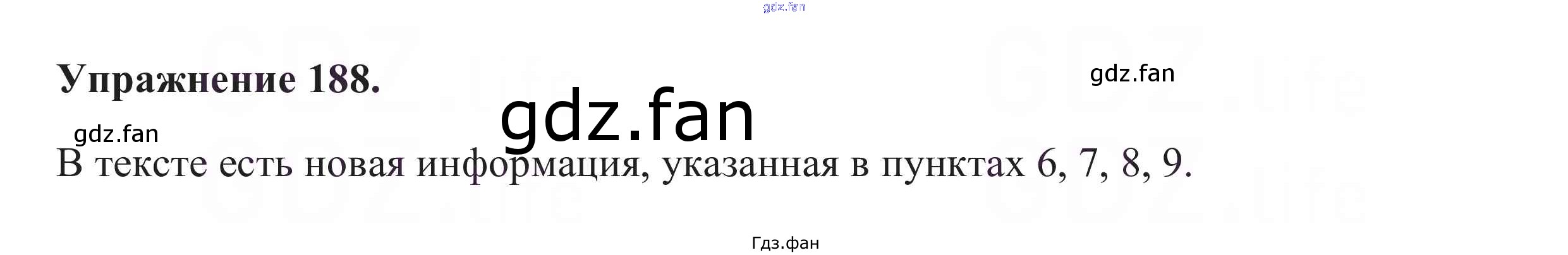 Проверка домашнего задания всегда занимает большое количество времени. На помощь приходит ГДЗ фан по Русскому языку пятого класса. Здесь собраны популярные ответы на 188 (стр. 70) Русский язык 5 класс Разумовская М.М.