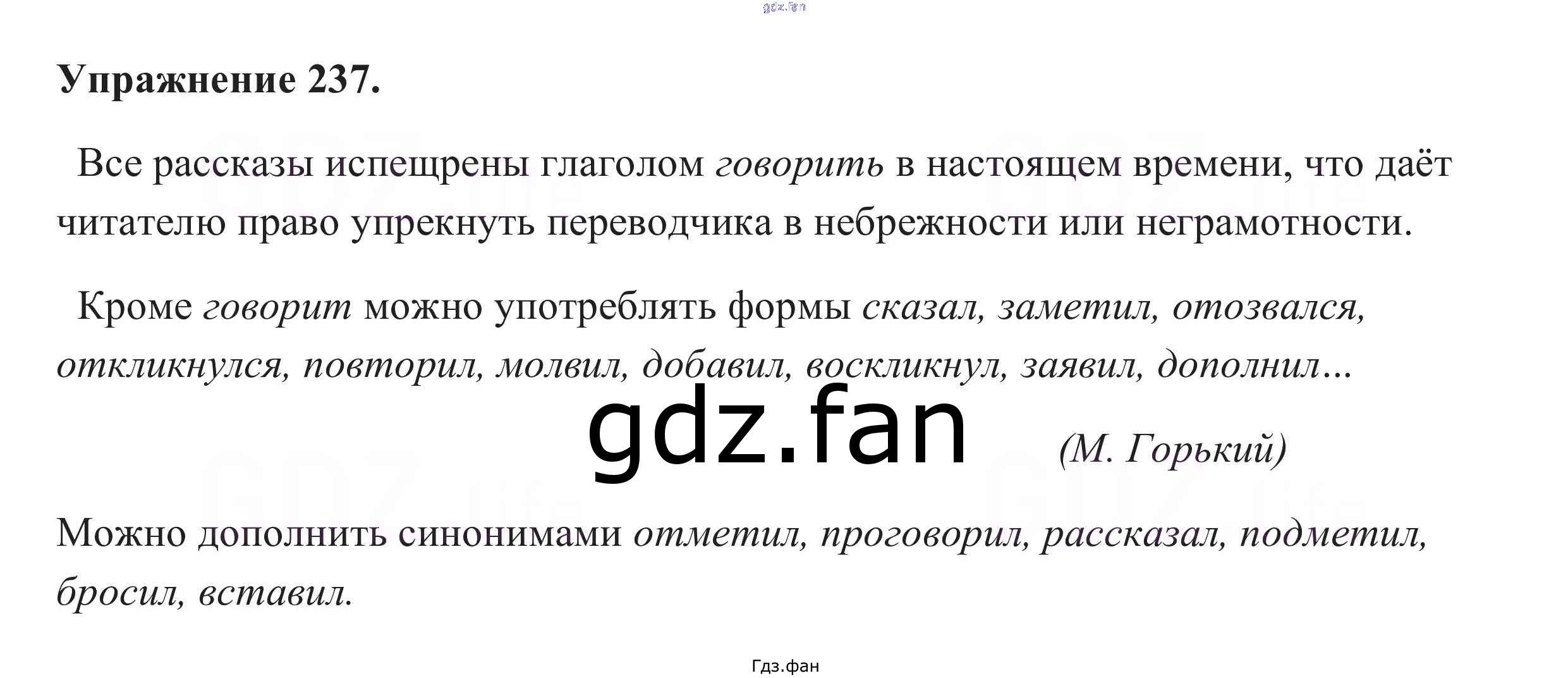 Проверка домашнего задания всегда занимает большое количество времени. На помощь приходит ГДЗ фан по Русскому языку пятого класса. Здесь собраны популярные ответы на 237 (стр. 85) Русский язык 5 класс Разумовская М.М.