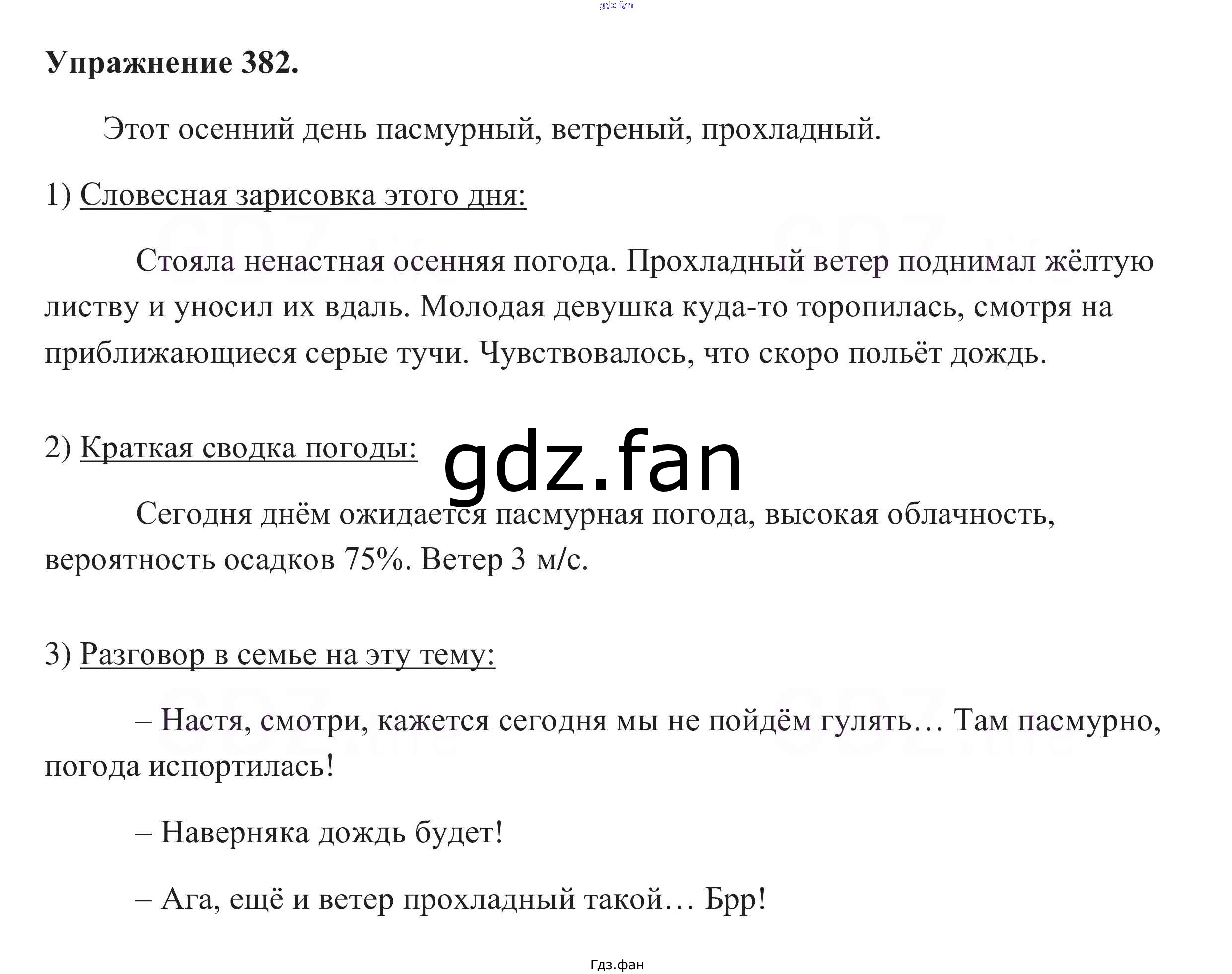 Проверка домашнего задания всегда занимает большое количество времени. На помощь приходит ГДЗ фан по Русскому языку пятого класса. Здесь собраны популярные ответы на 382 (стр. 136) Русский язык 5 класс Разумовская М.М.