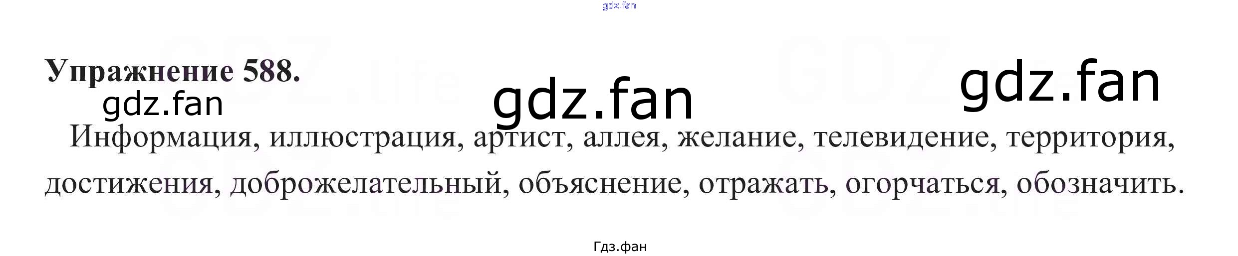 Проверка домашнего задания всегда занимает большое количество времени. На помощь приходит ГДЗ фан по Русскому языку пятого класса. Здесь собраны популярные ответы на 588 (стр. 210) Русский язык 5 класс Разумовская М.М.