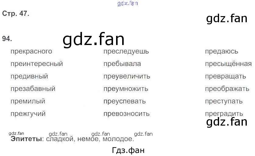 Проверка домашнего задания всегда занимает большое количество времени. На помощь приходит ГДЗ фан по Русскому языку шестого класса. Здесь собраны популярные ответы на 47 (упражнение 94) Русский язык 6 класс рабочая тетрадь Ларионова Л.Г. (к уч. Разумовской)
