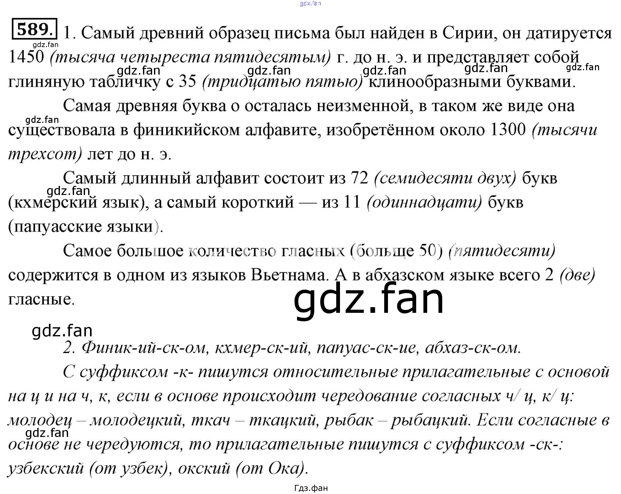 Проверка домашнего задания всегда занимает большое количество времени. На помощь приходит ГДЗ фан по Русскому языку шестого класса. Здесь собраны популярные ответы на 589 (стр. 96) Русский язык 6 класс Львов