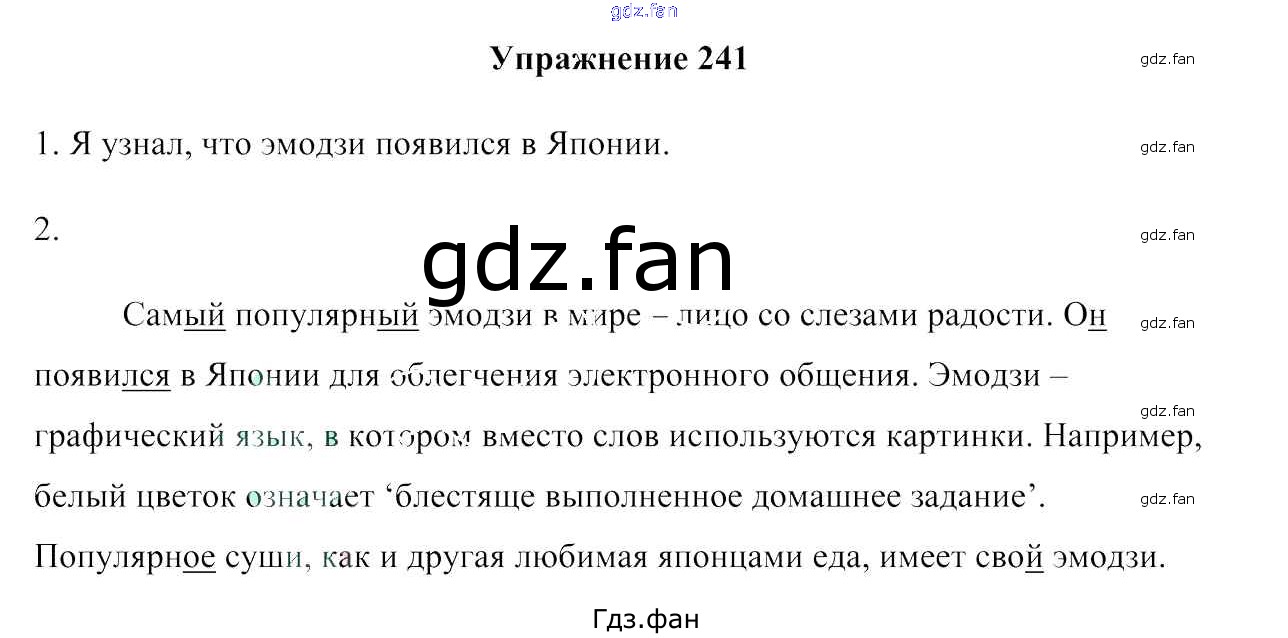 Проверка домашнего задания всегда занимает большое количество времени. На помощь приходит ГДЗ фан по Русскому языку шестого класса. Здесь собраны популярные ответы на 241 (стр. 115) Русский язык 6 класс Мурина Л.A.