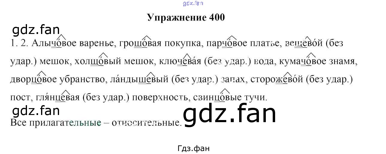 Проверка домашнего задания всегда занимает большое количество времени. На помощь приходит ГДЗ фан по Русскому языку шестого класса. Здесь собраны популярные ответы на 400 (стр. 180) Русский язык 6 класс Мурина Л.A.