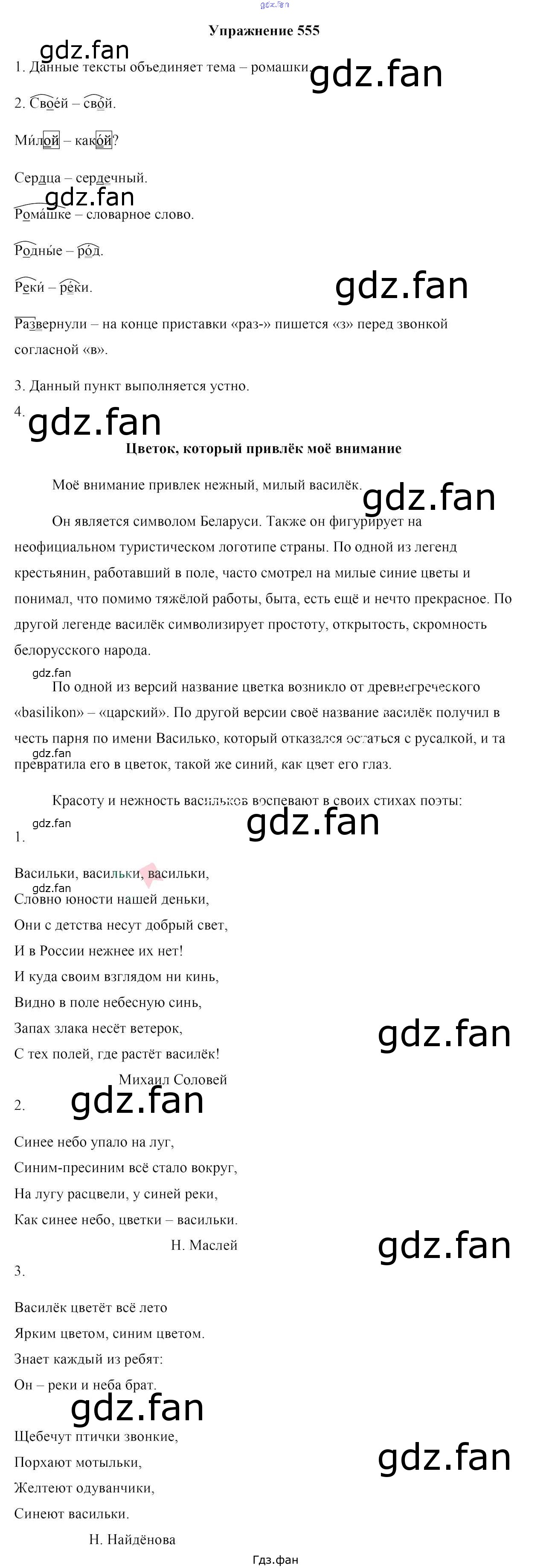 Проверка домашнего задания всегда занимает большое количество времени. На помощь приходит ГДЗ фан по Русскому языку шестого класса. Здесь собраны популярные ответы на 555 (стр. 233) Русский язык 6 класс Мурина Л.A.