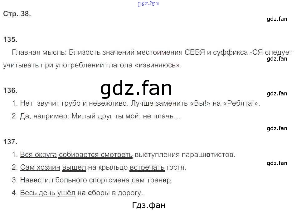 Проверка домашнего задания всегда занимает большое количество времени. На помощь приходит ГДЗ фан по Русскому языку шестого класса. Здесь собраны популярные ответы на 38 (упражнение 135, 136, 137) Русский язык 6 класс рабочая тетрадь Тростенцова Л.А. (к уч. Ладыженской)