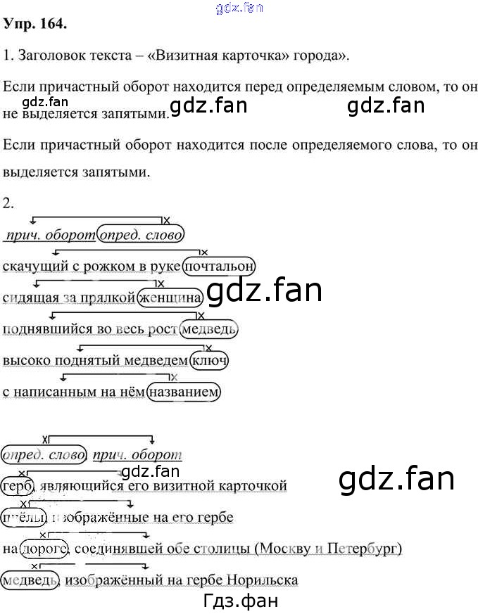 Проверка домашнего задания всегда занимает большое количество времени. На помощь приходит ГДЗ фан по Русскому языку седьмого класса. Здесь собраны популярные ответы на 164 (стр. 122) Русский язык 7 класс Быстрова Е.А.