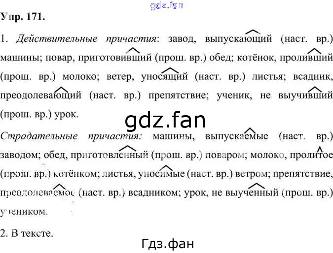 Проверка домашнего задания всегда занимает большое количество времени. На помощь приходит ГДЗ фан по Русскому языку седьмого класса. Здесь собраны популярные ответы на 171 (стр. 127) Русский язык 7 класс Быстрова Е.А.