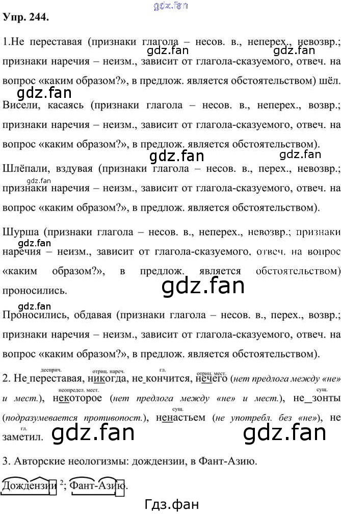 Проверка домашнего задания всегда занимает большое количество времени. На помощь приходит ГДЗ фан по Русскому языку седьмого класса. Здесь собраны популярные ответы на 244 (стр. 172) Русский язык 7 класс Быстрова Е.А.