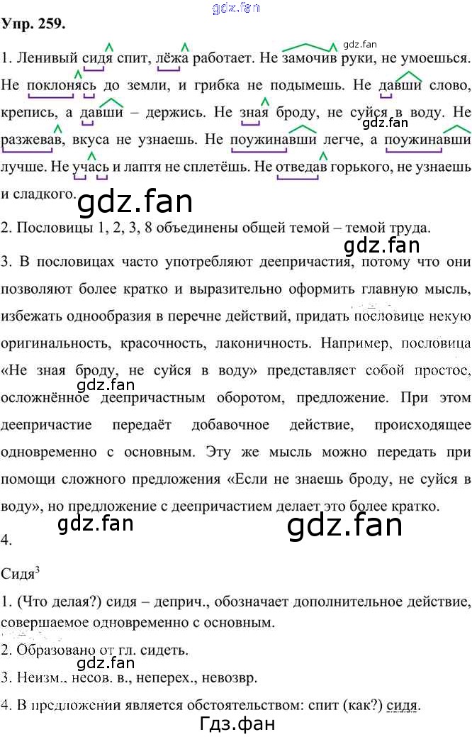 Проверка домашнего задания всегда занимает большое количество времени. На помощь приходит ГДЗ фан по Русскому языку седьмого класса. Здесь собраны популярные ответы на 259 (стр. 180) Русский язык 7 класс Быстрова Е.А.