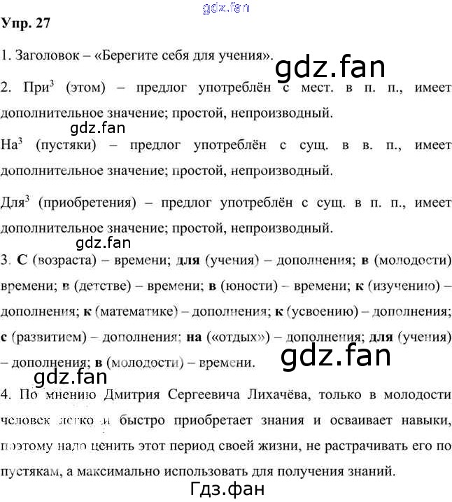 Проверка домашнего задания всегда занимает большое количество времени. На помощь приходит ГДЗ фан по Русскому языку седьмого класса. Здесь собраны популярные ответы на 27 (стр. 18) Русский язык 7 класс Быстрова Е.А.