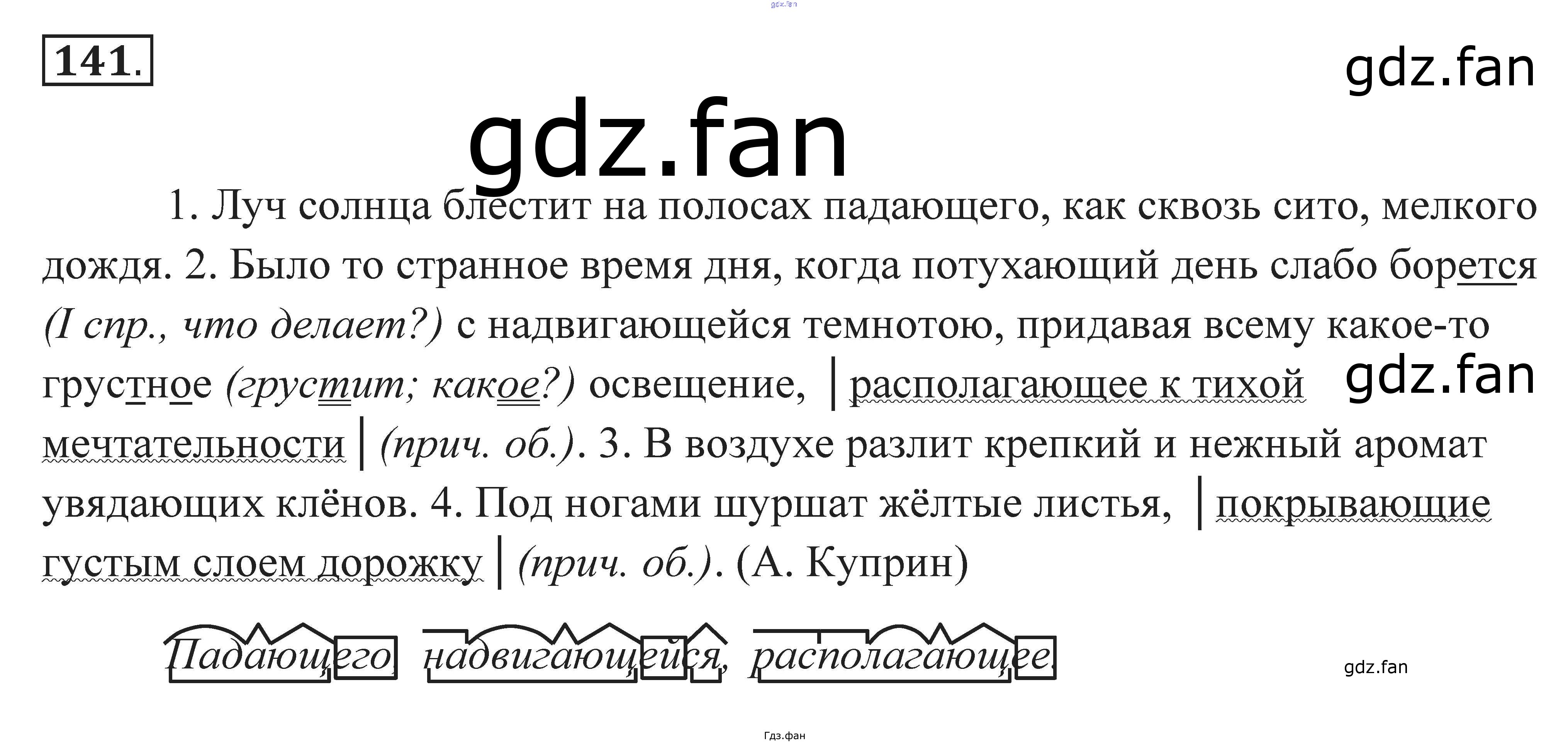 Проверка домашнего задания всегда занимает большое количество времени. На помощь приходит ГДЗ фан по Русскому языку седьмого класса. Здесь собраны популярные ответы на 141 (стр. 56) Русский язык. Практика 7 класс Пименова С.Н.