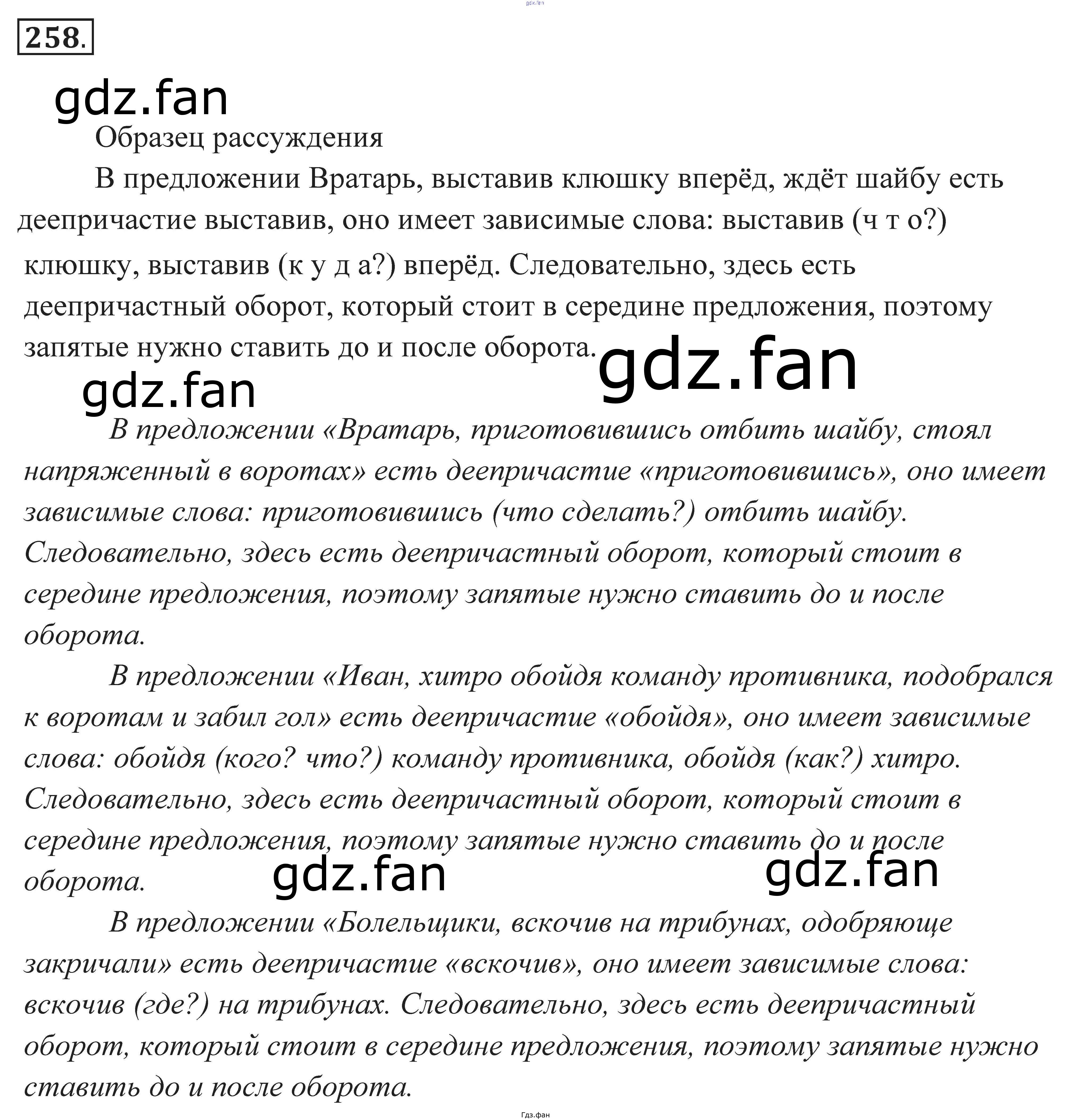 Проверка домашнего задания всегда занимает большое количество времени. На помощь приходит ГДЗ фан по Русскому языку седьмого класса. Здесь собраны популярные ответы на 258 (стр. 95) Русский язык. Практика 7 класс Пименова С.Н.