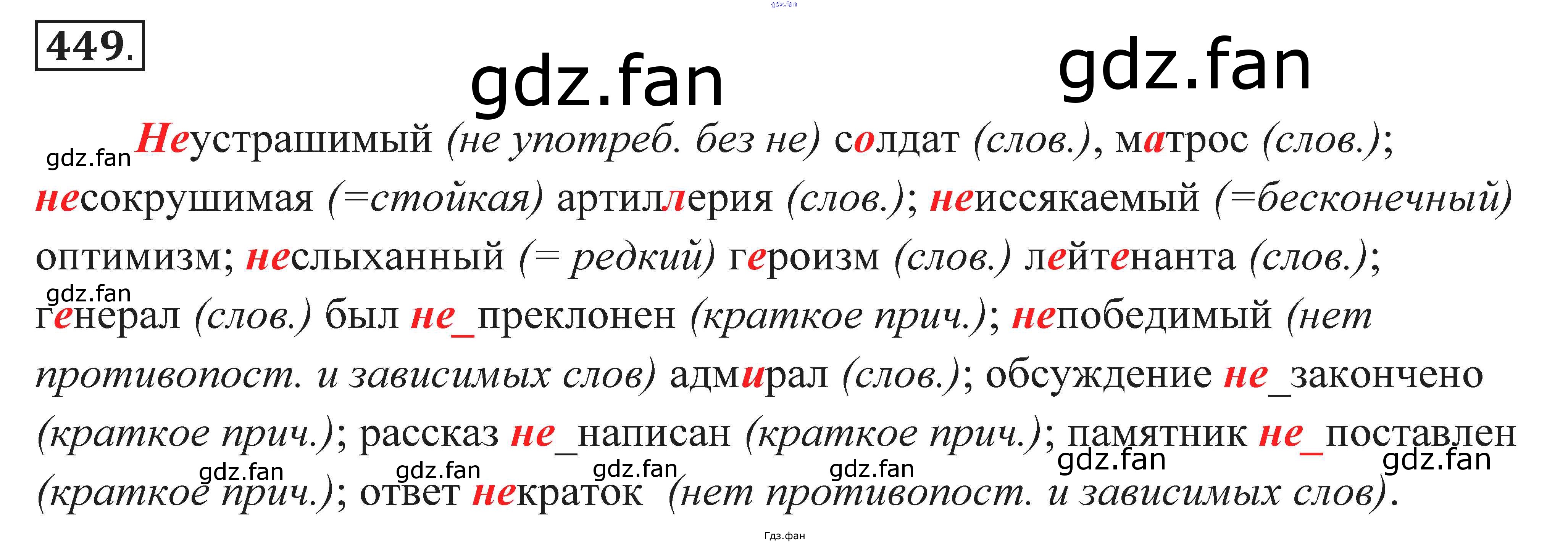 Проверка домашнего задания всегда занимает большое количество времени. На помощь приходит ГДЗ фан по Русскому языку седьмого класса. Здесь собраны популярные ответы на 449 (стр. 169) Русский язык. Практика 7 класс Пименова С.Н.