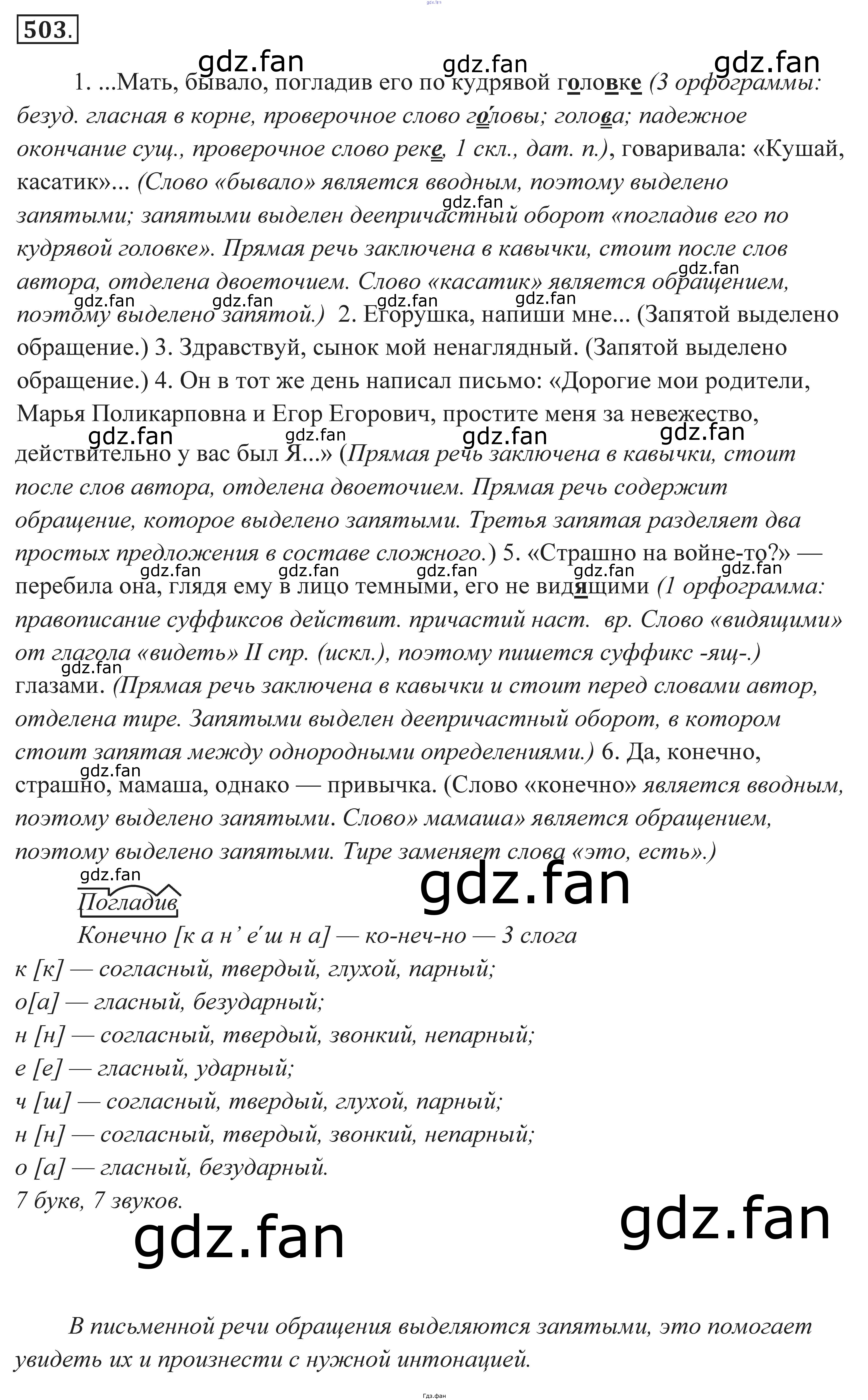 Проверка домашнего задания всегда занимает большое количество времени. На помощь приходит ГДЗ фан по Русскому языку седьмого класса. Здесь собраны популярные ответы на 503 (стр. 188) Русский язык. Практика 7 класс Пименова С.Н.
