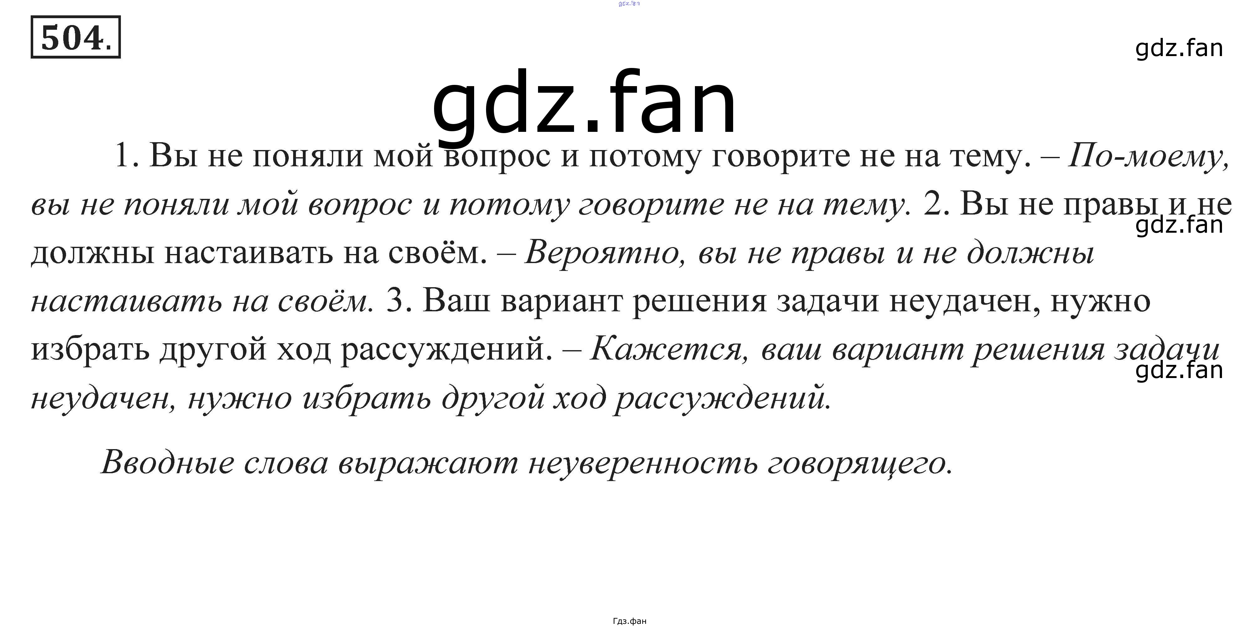 Проверка домашнего задания всегда занимает большое количество времени. На помощь приходит ГДЗ фан по Русскому языку седьмого класса. Здесь собраны популярные ответы на 504 (стр. 189) Русский язык. Практика 7 класс Пименова С.Н.