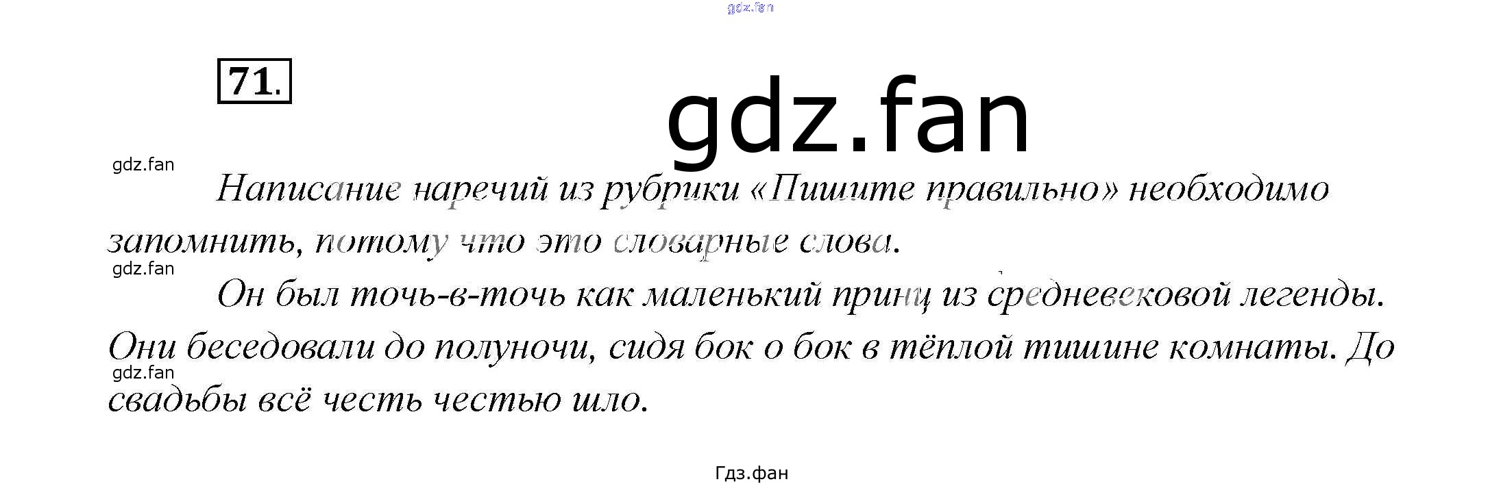 Проверка домашнего задания всегда занимает большое количество времени. На помощь приходит ГДЗ фан по Русскому языку седьмого класса. Здесь собраны популярные ответы на 71 (стр. 190) Русский язык 7 класс Шмелев А.Д.