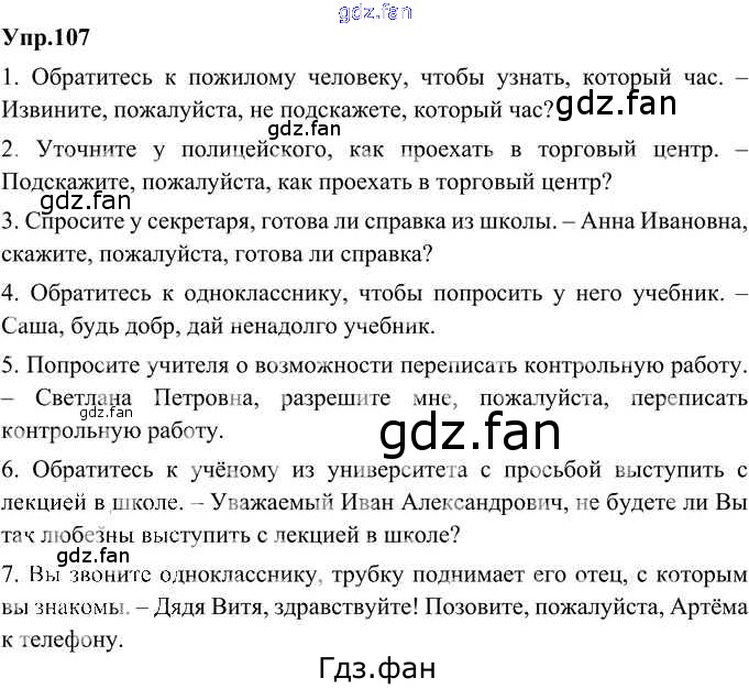 Проверка домашнего задания всегда занимает большое количество времени. На помощь приходит ГДЗ фан по Русскому языку восьмого класса. Здесь собраны популярные ответы на 107 (стр. 70) Русский родной язык 8 класс Александрова О.М.