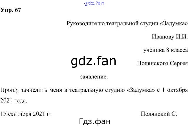 Проверка домашнего задания всегда занимает большое количество времени. На помощь приходит ГДЗ фан по Русскому языку восьмого класса. Здесь собраны популярные ответы на 67 (стр. 58) Русский язык 8 класс Быстрова Е.А.