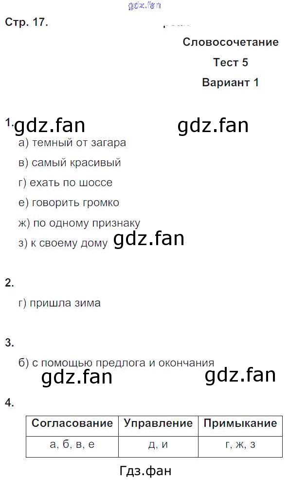 Проверка домашнего задания всегда занимает большое количество времени. На помощь приходит ГДЗ фан по Русскому языку восьмого класса. Здесь собраны популярные ответы на 17 (Словосочетание. Тест 5. Вариант 1 № 1, 2, 3, 4) Русский язык 8 класс Тесты Книгина М.П.
