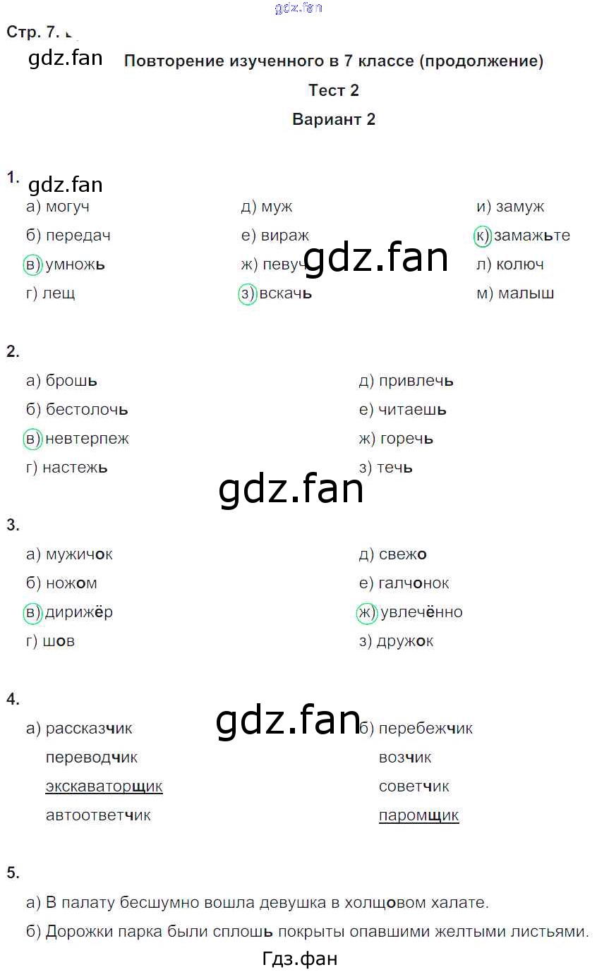 Проверка домашнего задания всегда занимает большое количество времени. На помощь приходит ГДЗ фан по Русскому языку восьмого класса. Здесь собраны популярные ответы на 7 (Вариант 2 № 1, 2, 3, 4, 5) Русский язык 8 класс Тесты Книгина М.П.