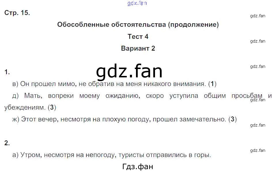 Проверка домашнего задания всегда занимает большое количество времени. На помощь приходит ГДЗ фан по Русскому языку восьмого класса. Здесь собраны популярные ответы на 15 (Вариант 2 № 1, 2) Русский язык 8 класс Тесты Книгина М.П.
