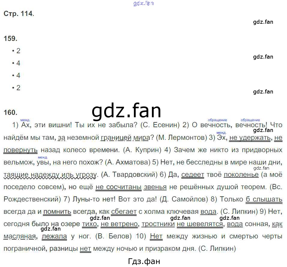 Проверка домашнего задания всегда занимает большое количество времени. На помощь приходит ГДЗ фан по Русскому языку восьмого класса. Здесь собраны популярные ответы на 114 (№ 159, 160) Русский язык 8 класс рабочая тетрадь Литвинова М.М. (к уч. Разумовской)