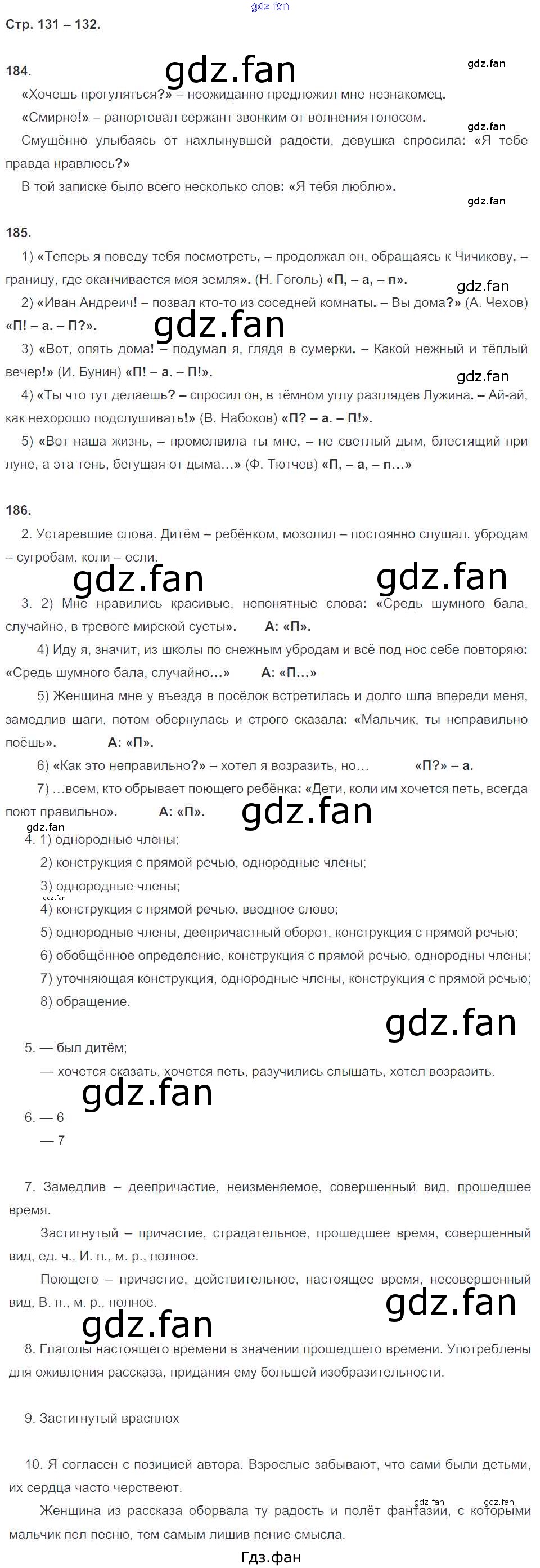 Проверка домашнего задания всегда занимает большое количество времени. На помощь приходит ГДЗ фан по Русскому языку восьмого класса. Здесь собраны популярные ответы на 131-132 (№ 184, 185, 186) Русский язык 8 класс рабочая тетрадь Литвинова М.М. (к уч. Разумовской)