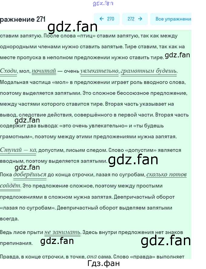 Проверка домашнего задания всегда занимает большое количество времени. На помощь приходит ГДЗ фан по Русскому языку восьмого класса. Здесь собраны популярные ответы на 271 (стр. 126) Русский язык. Практика 8 класс Пичугов Ю.С.