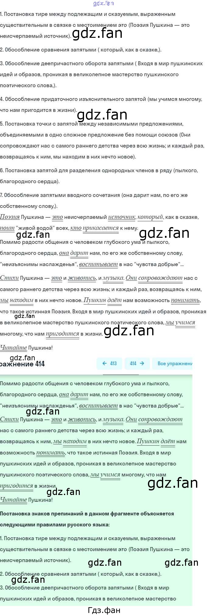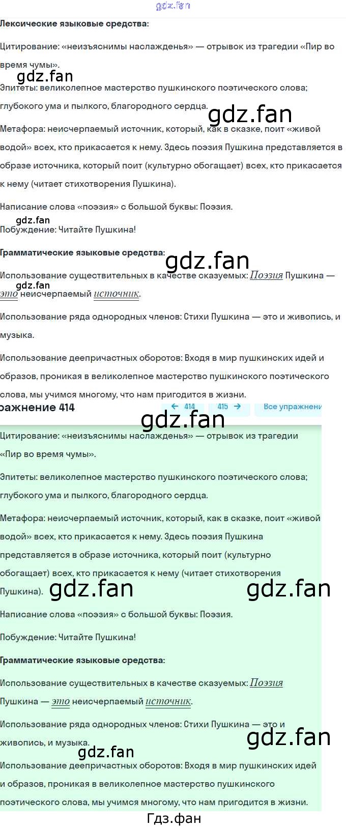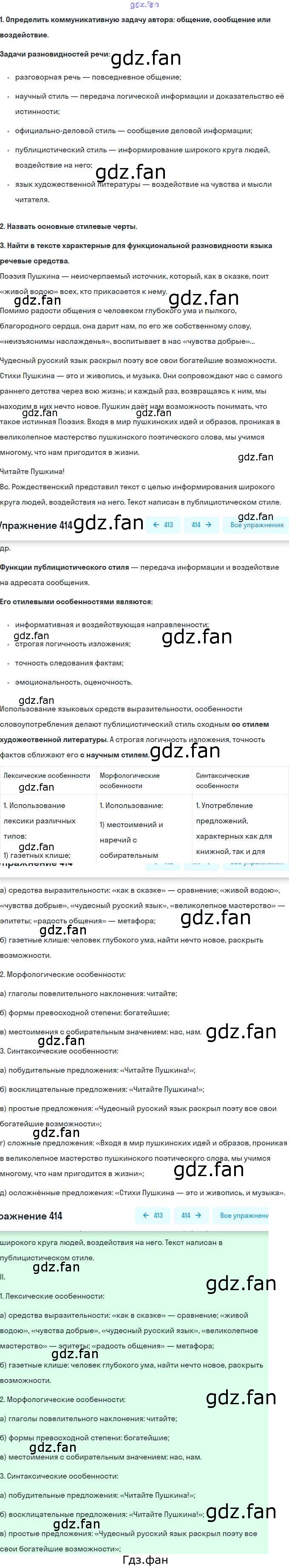 Проверка домашнего задания всегда занимает большое количество времени. На помощь приходит ГДЗ фан по Русскому языку восьмого класса. Здесь собраны популярные ответы на 414 (стр. 189) Русский язык. Практика 8 класс Пичугов Ю.С.