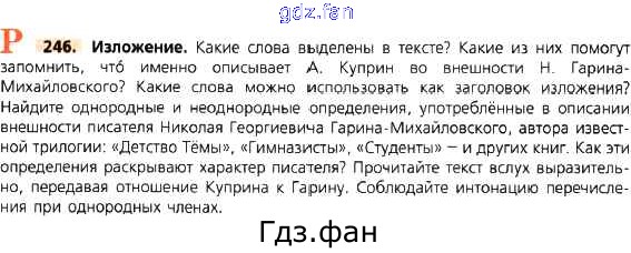 Проверка домашнего задания всегда занимает большое количество времени. На помощь приходит ГДЗ фан по Русскому языку восьмого класса. Здесь собраны популярные ответы на 246 (стр. 136) Русский язык 8 класс Тростенцова Л.А.