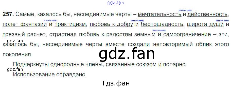 Проверка домашнего задания всегда занимает большое количество времени. На помощь приходит ГДЗ фан по Русскому языку восьмого класса. Здесь собраны популярные ответы на 257 (стр. 142) Русский язык 8 класс Тростенцова Л.А.