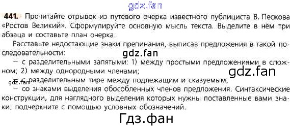 Проверка домашнего задания всегда занимает большое количество времени. На помощь приходит ГДЗ фан по Русскому языку восьмого класса. Здесь собраны популярные ответы на 441 (стр. 250) Русский язык 8 класс Тростенцова Л.А.