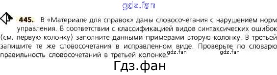 Проверка домашнего задания всегда занимает большое количество времени. На помощь приходит ГДЗ фан по Русскому языку восьмого класса. Здесь собраны популярные ответы на 445 (стр. 252) Русский язык 8 класс Тростенцова Л.А.
